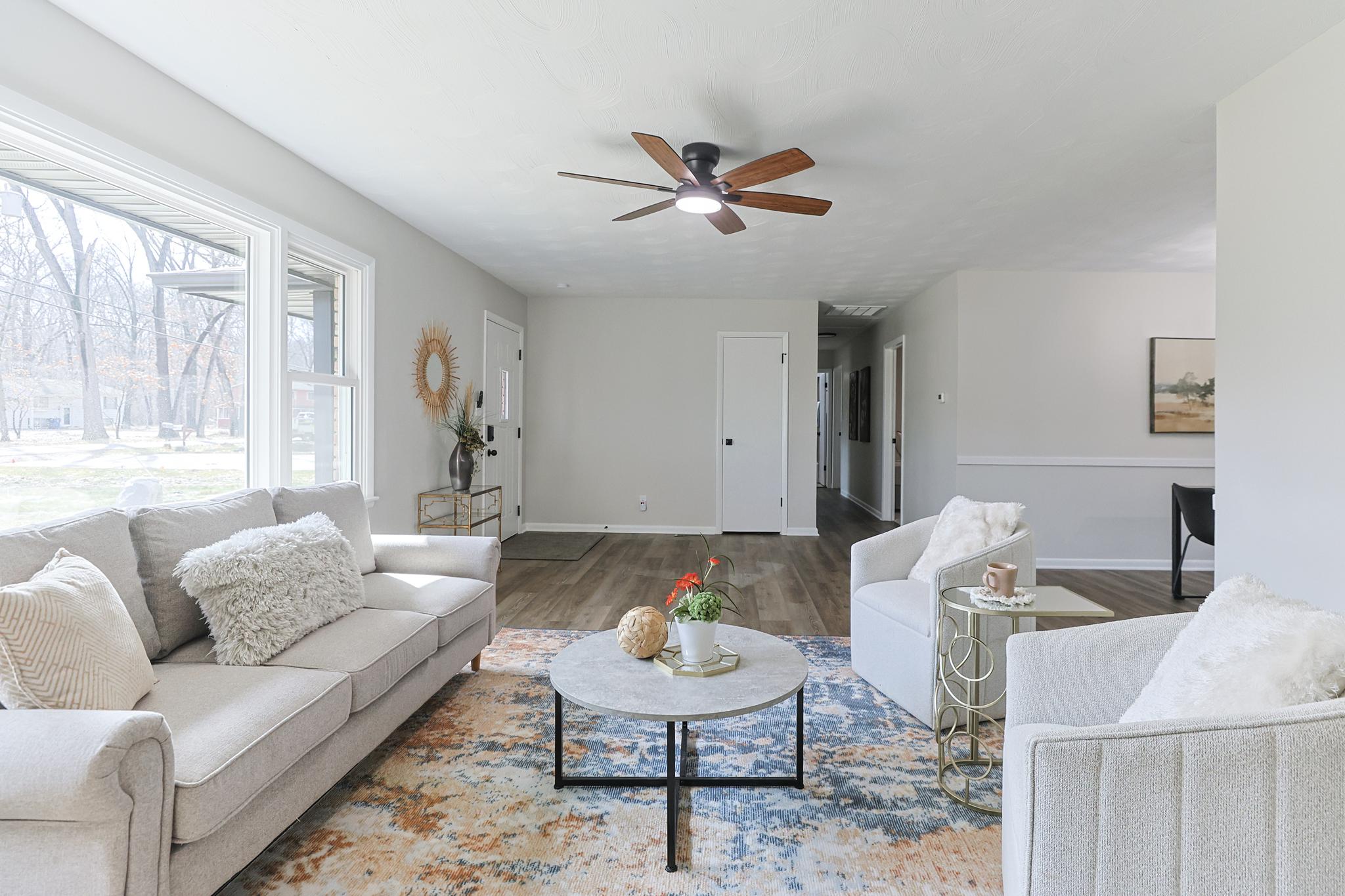 Get into this updated all brick beauty, Michiana!!! A spacious 4 bedroom, 3 bath ranch is waiting for you to call your own! This home boasts all new windows, flooring, paint, appliances and kitchen including quartz countertops!! You will not be disappointed with the all new kitchen, including a large peninsula for your friends to sit at and allllll that counter space. The kitchen is a show stopper with the tiled backsplash and under cabinet lighting. The baths are beautifully updated too. As you make your way through this thoughtfully appointed home, be sure to check out the hand hewn beams in the family room and the stone front fireplace. Add another living space as you enter the home that could be a living room, formal dining or office space. How about those built in desks in every bedroom for convenience? Enjoy peace of mind with a brand new HVAC system, a crawl space dehumidifier with a 10 year warranty and a new viscqueen all the way around. The completely fenced in back yard with a 10x15 covered concrete patio is just waiting to be enjoyed. Stop looking and make your appointment today, this practically brand new home in the much desired PHM school district is all about you!