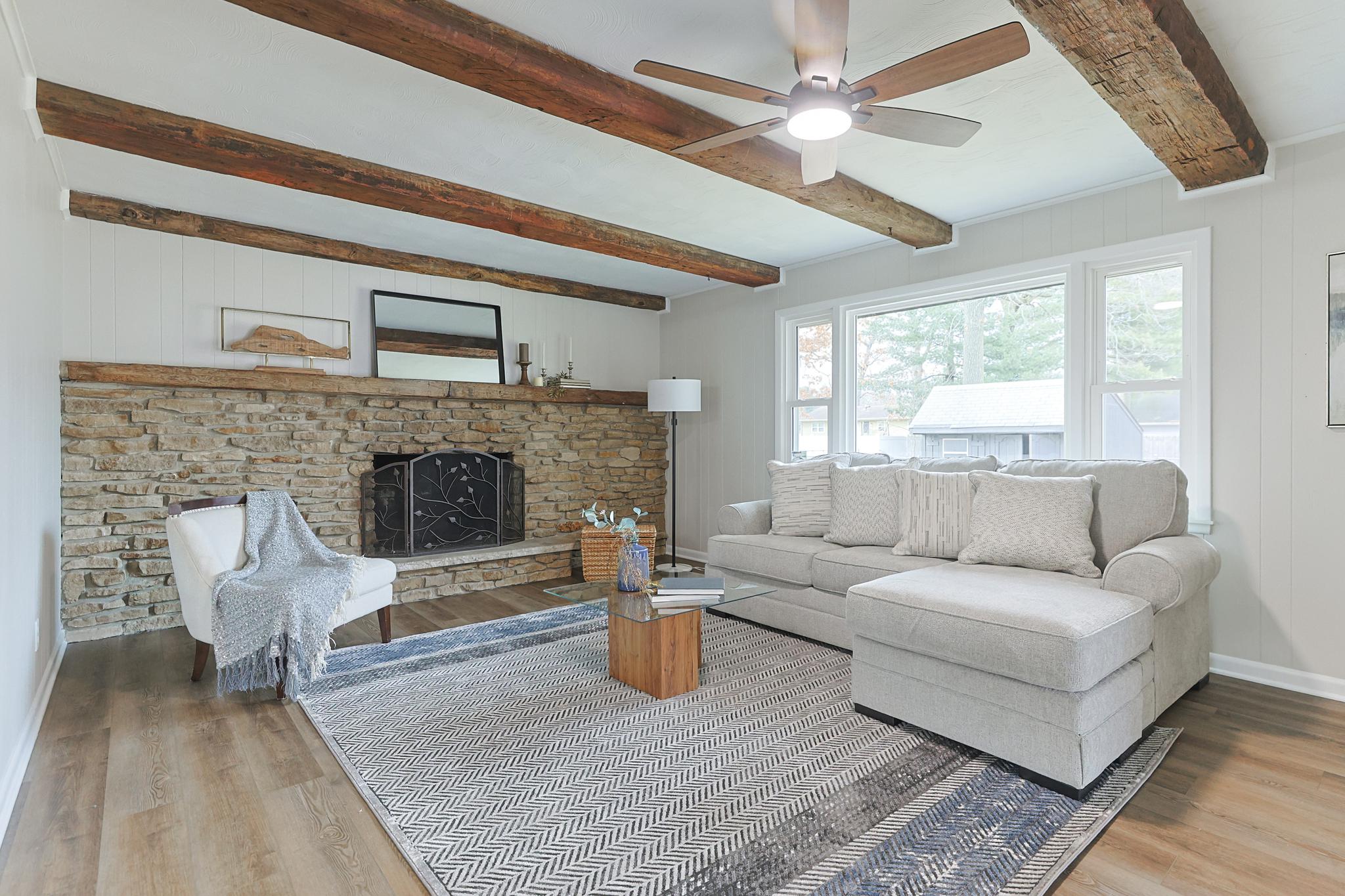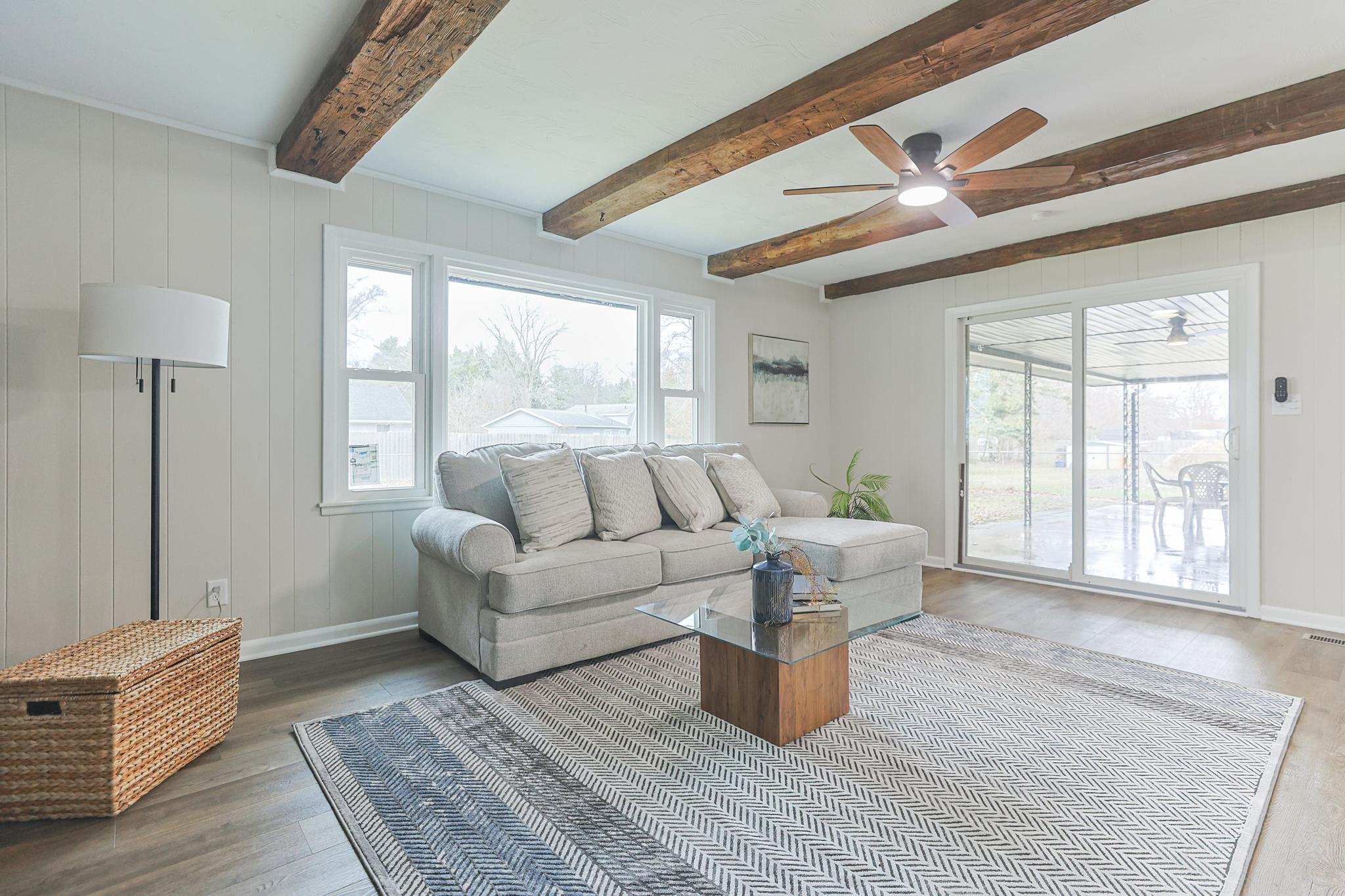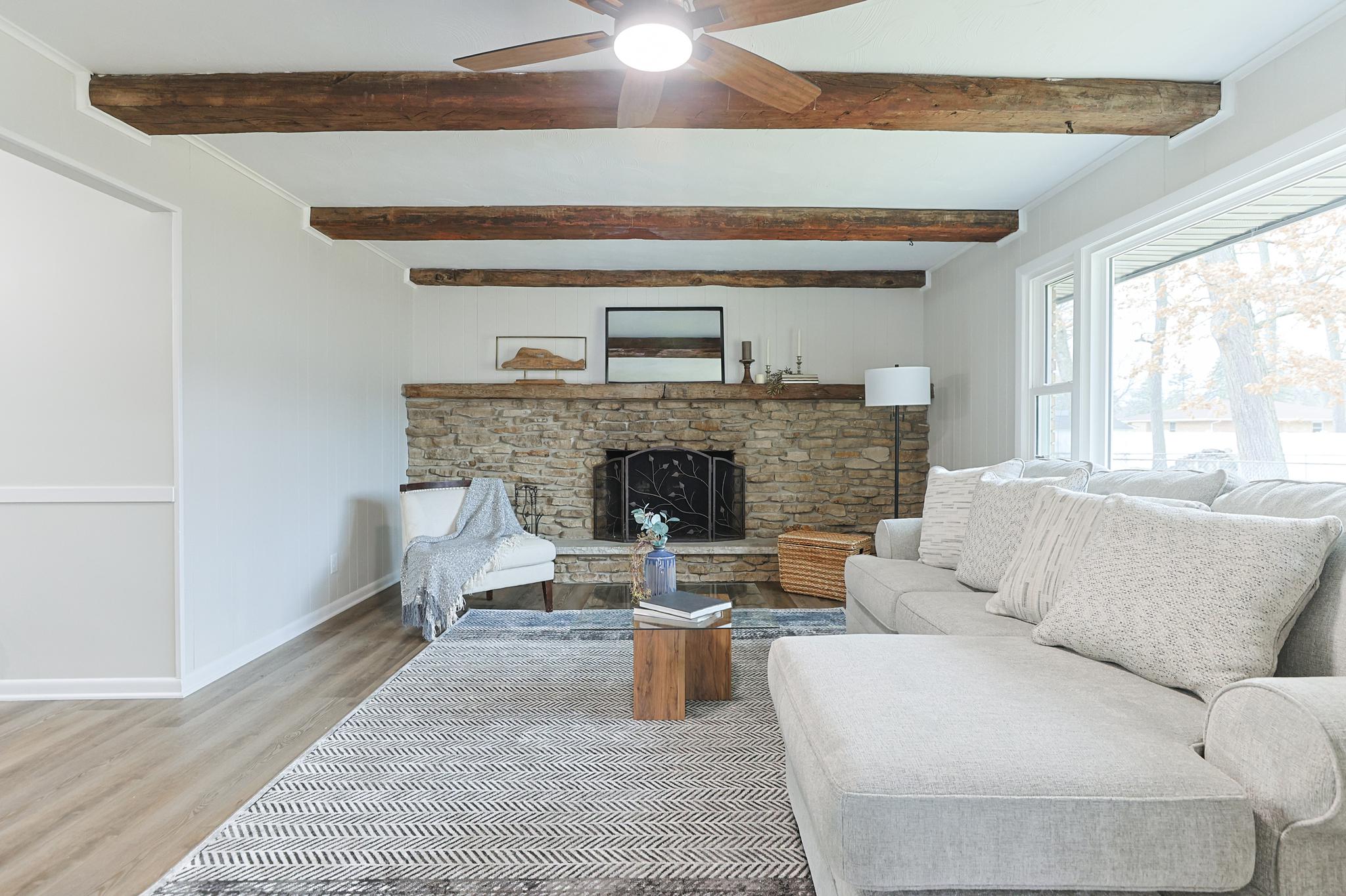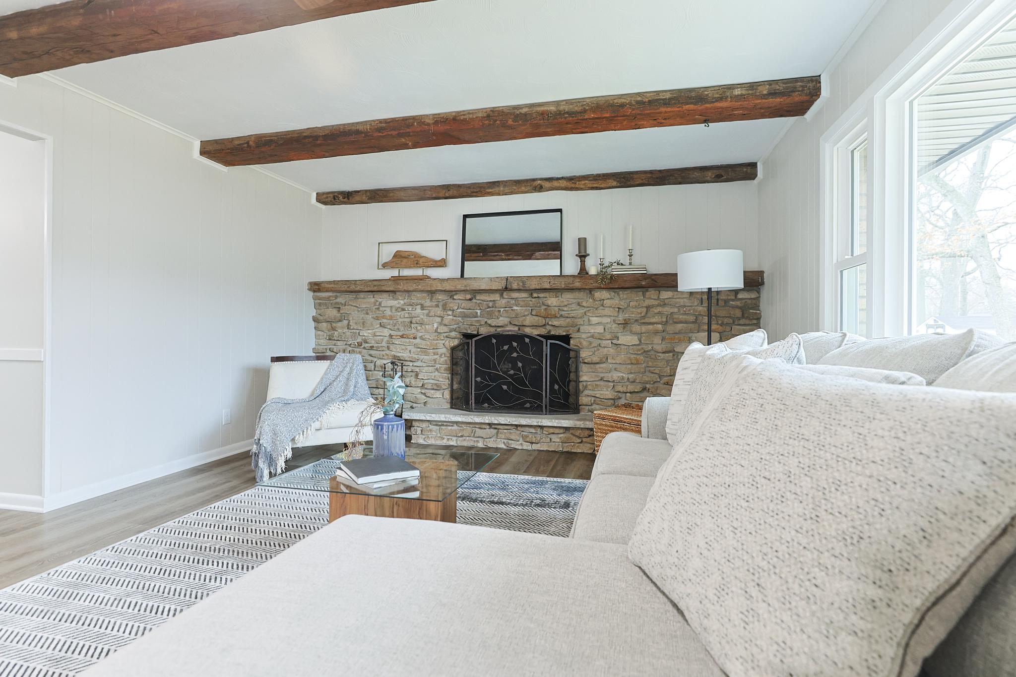 Hand-hewn beams in the family room